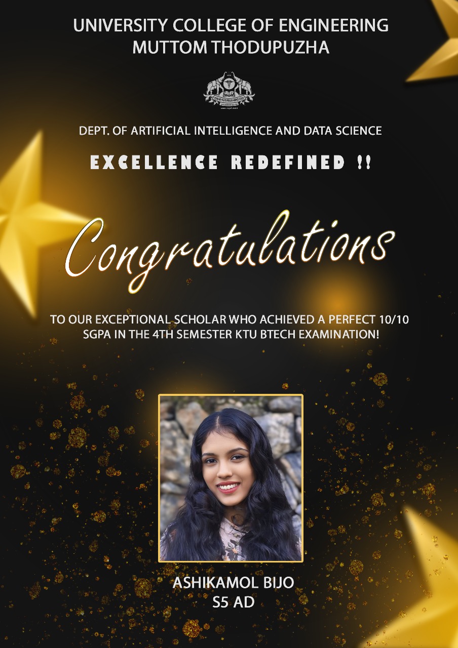 Achieved SGPA 10 in S5 Artificial Intelligence